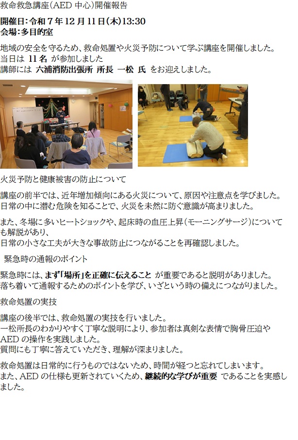 ~ささえ愛のつどいの講座~ AEDを中心とした救命救急講座のご報告